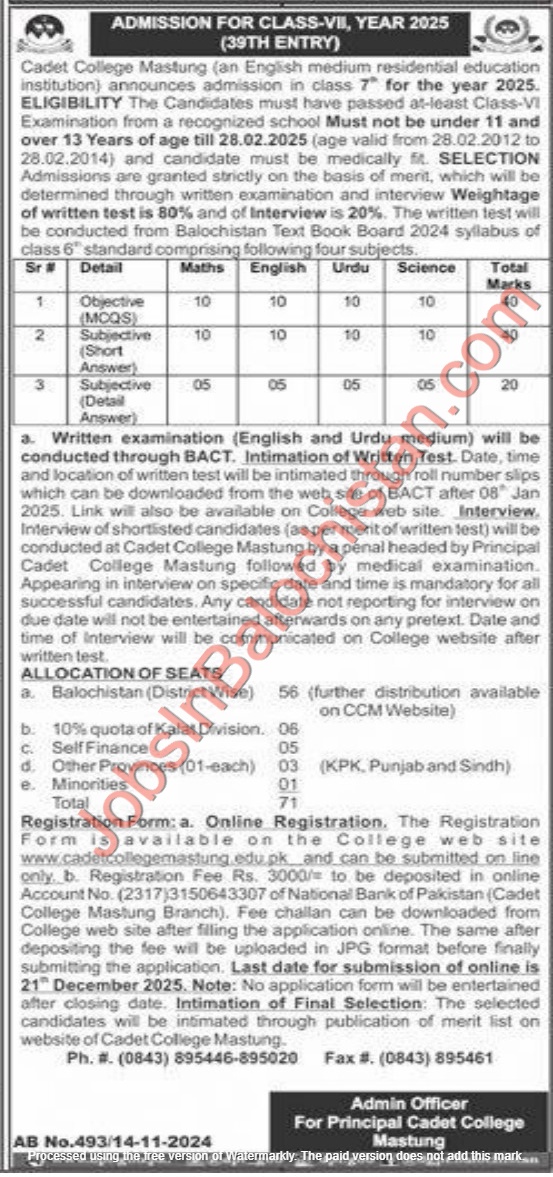 SELECTION:admission are stricly on the basis of merit,