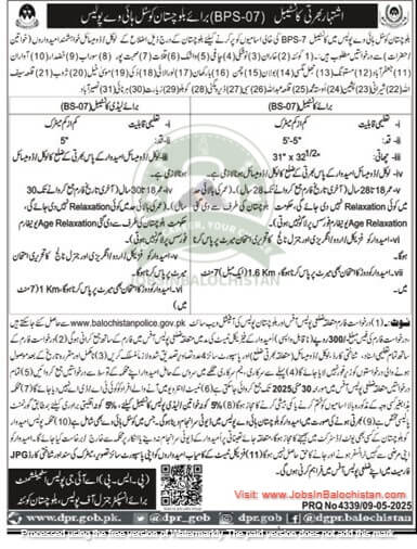 Balochistan Police, Coastal Highway announced Constable jobs 2025. The vacancies have been announced in Balochistan through the Baakhabar Newspaper. The hiring process will follow departmental guidelines. Candidates from Balochistan who satisfy the requirements can now apply for the vacancies that are listed in the advertisement. https://balochistanjobs.com/ https://pk.indeed.com/l-balochistan-jobs.html