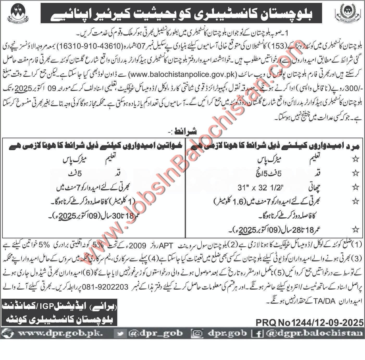 - Download Application form: www.balochistanpolice.gov.pk.