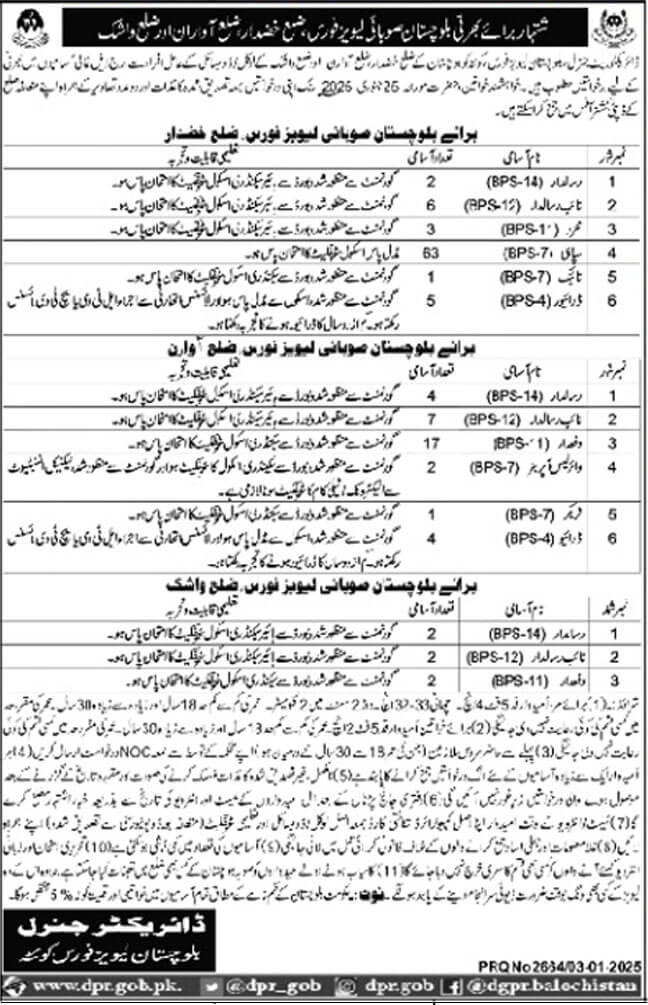 - Conversely, submit your applications for the post of Department of Levies Force Balochistan before the deadline 25 January 2025