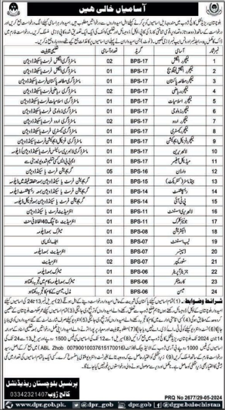 1- Lecturar English, English Language, Pak Study, Math, Islamiat, Zology...... 2- Librarian 3- Medical Officer and much more 👇