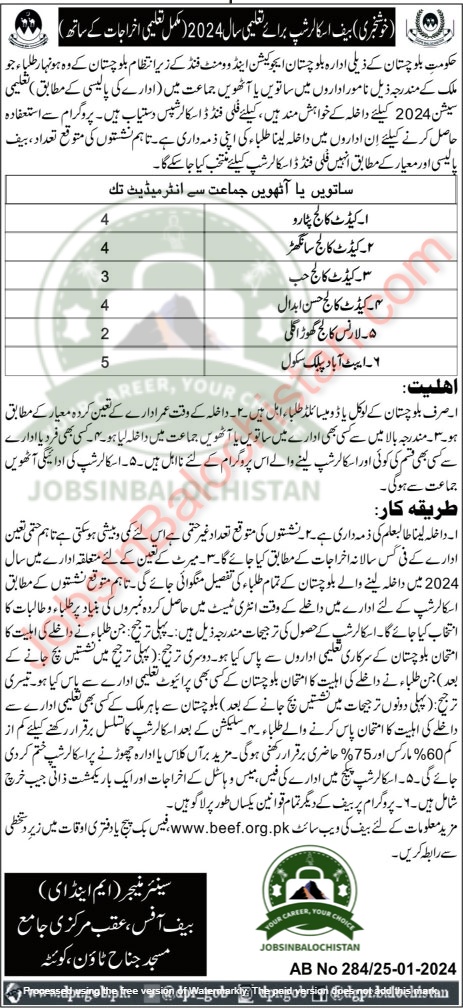 Title: Exciting News: Fully Funded Beef Scholarship for Academic Year 2024 in Balochistan!