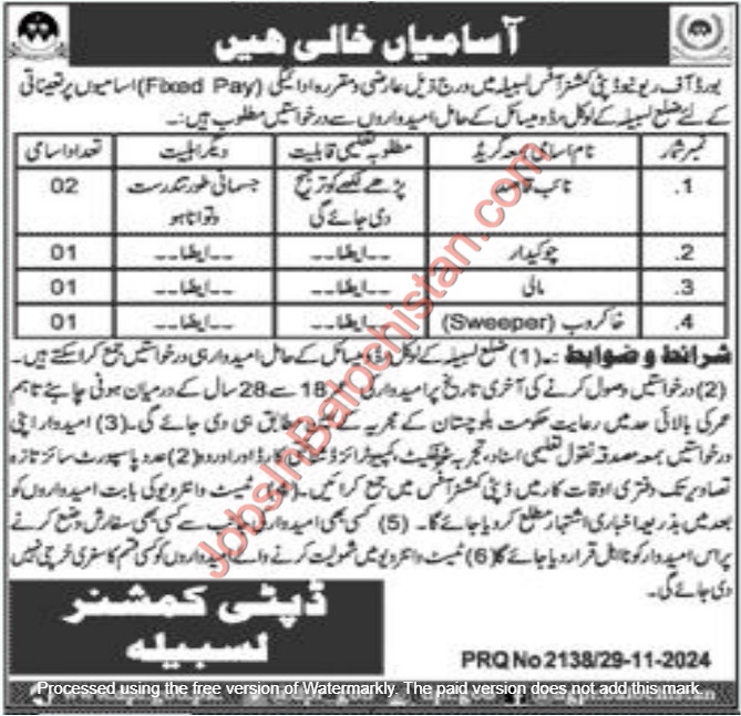 Board of Revenue Department Lasbela Jobs In Balochistan 2024