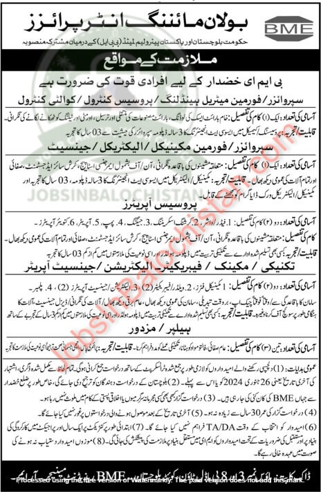 Those who are interested in Bolan Mining Enterprises jobs in Balochistan Khuzdar are advised that they must first read this post and the advertisement for all the details. After reading the entire adv and determining that you are qualified for any position, you should submit your application in accordance with its requirements. Bolan Mining Enterprises jobs in Balochistan Khuzdar 2024 has announced a number of openings in Balochistan.