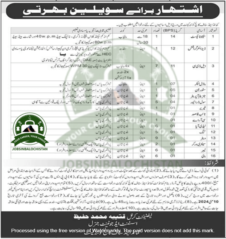 - All candidates should send their applications along with educational certificate, certified copy of domicile national identity card and 3 passport size recent phonographs to Command and Staff College Civil Establishment Branch Quetta and enter their mobile number in the application.