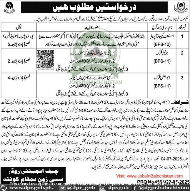 • Naseerabad Division locals: Send their documents to the office of 👉 Superintendent engineer (road circle) Naseerabad, place Dera Murad Jamali.