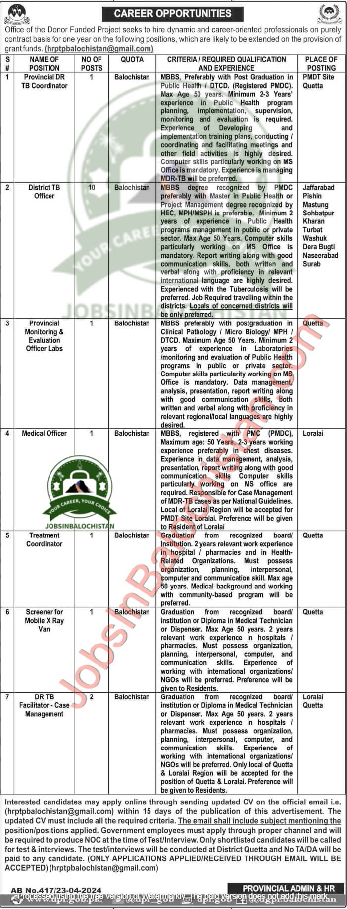 Donor Funded Project has jobs in Balochistan. The vacancies have been announced in Balochistan through the Intekhaab Newspaper. The hiring process will follow departmental guidelines. Candidates from Balochistan who satisfy the requirements can now apply for the vacancies that are listed in the advertisement, Female, below. After the recruitment process is complete, eligible applicants can apply using the organization’s established procedure and receive these Jobs in Balochistan in 2024