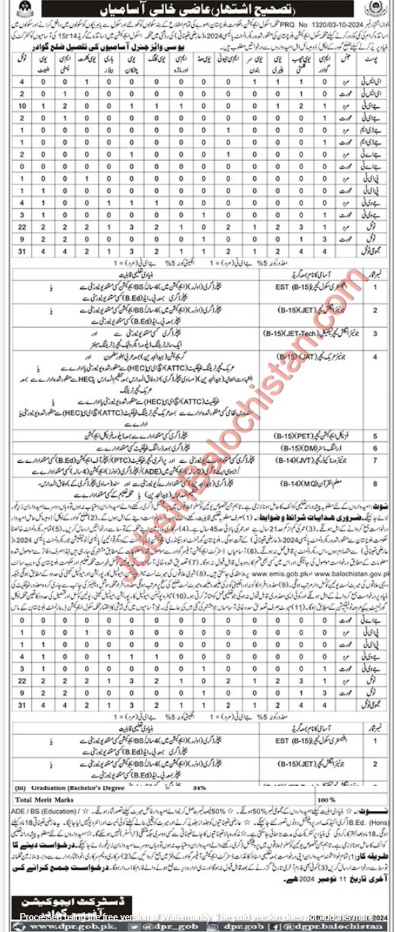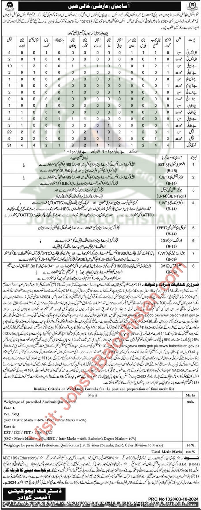 Submit applications along with all required documents to the District Education Officer, Gwadar, by 17th October 2024.