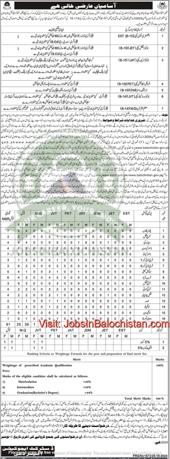 The Education Department of District Dukki Balochistan 2024. invites applications for various teaching Jobs in schools across the district. These posts are temporary, and candidates from Dukki are encouraged to apply. Applicants must meet the required educational qualifications and eligibility criteria to be considered for these roles.