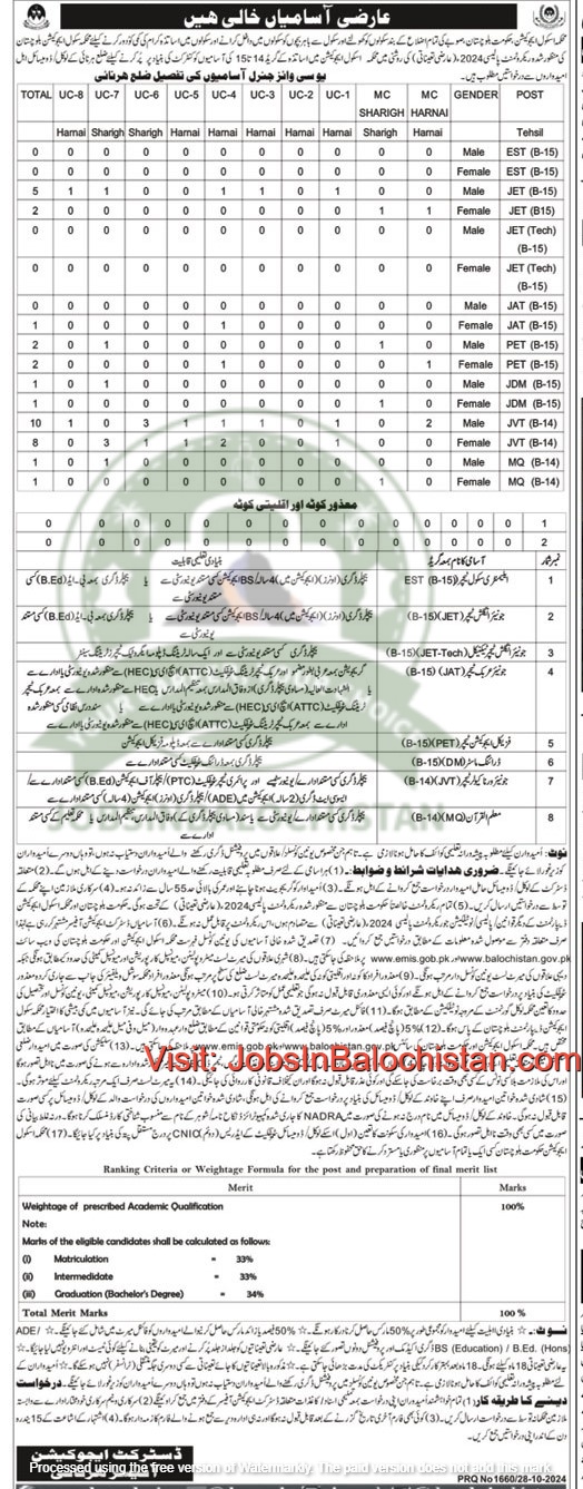 The Education Department of District Harnai, Balochistan, invites applications for various teaching jobs 2024 in schools across the district. These posts are temporary, and candidates from Harnai are encouraged to apply. Applicants must meet the required educational qualifications and eligibility criteria to be considered for these roles.