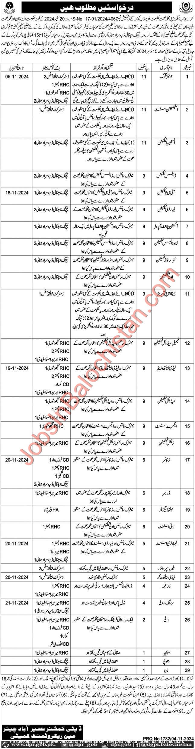 Submit applications along with all required documents to the District Education Officer, Jhal Magsi, by 20 Nov 2024.