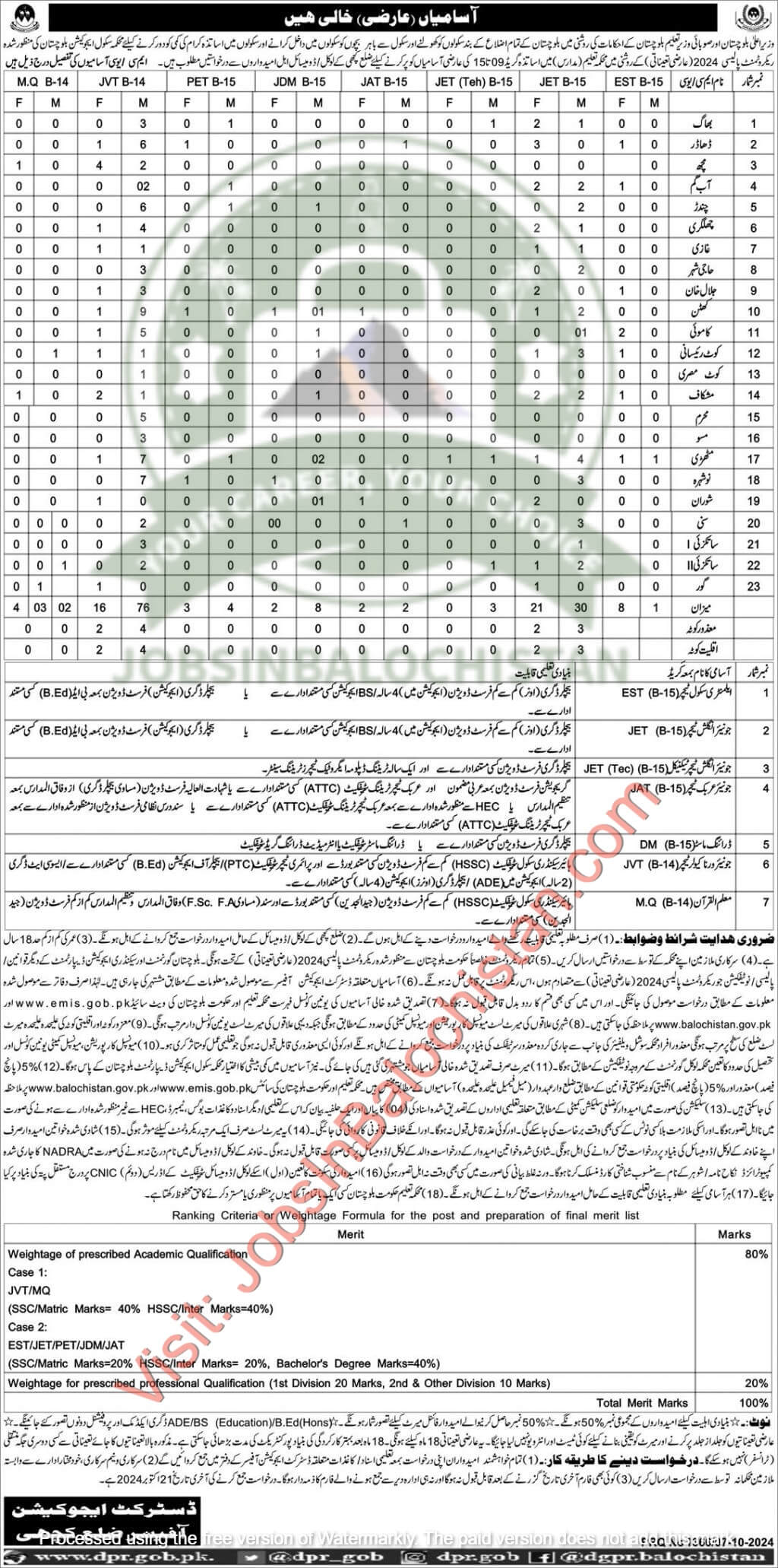 The Education Department of District Kachhi, Balochistan, invites applications for various teaching posts in schools across the district. These posts are temporary, and candidates from Gwadar are encouraged to apply. Applicants must meet the required educational qualifications and eligibility criteria to be considered for these roles.
