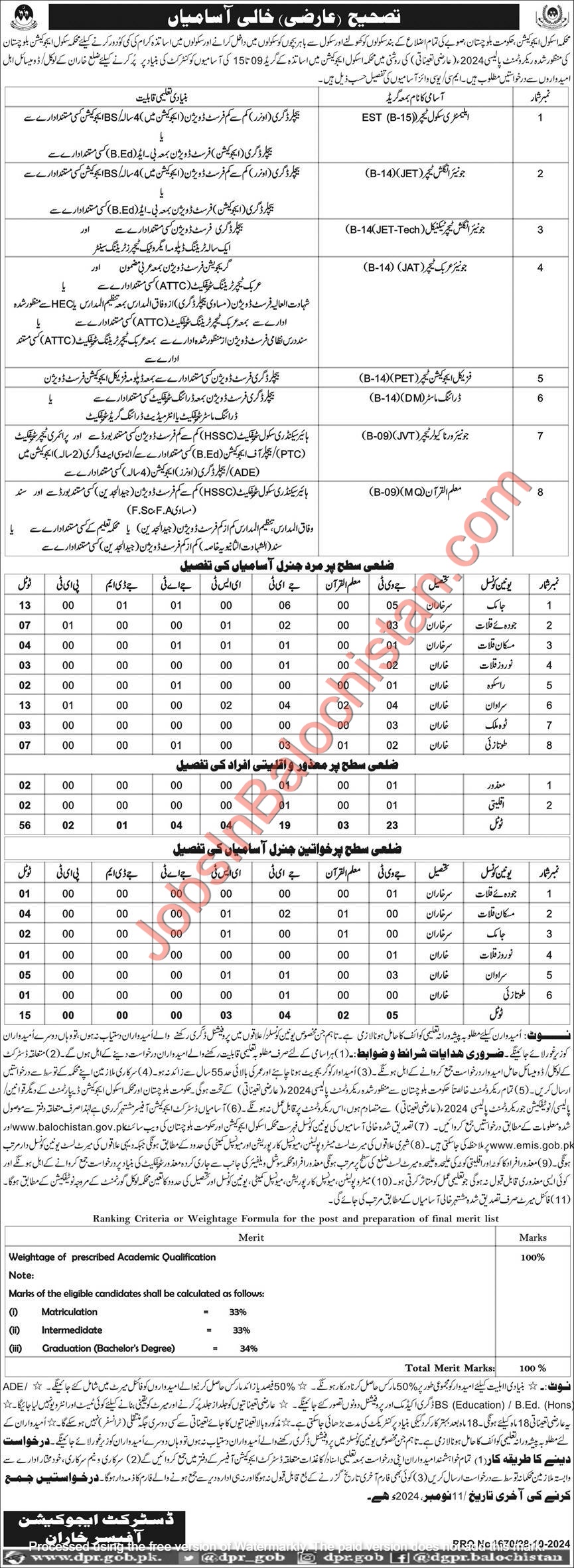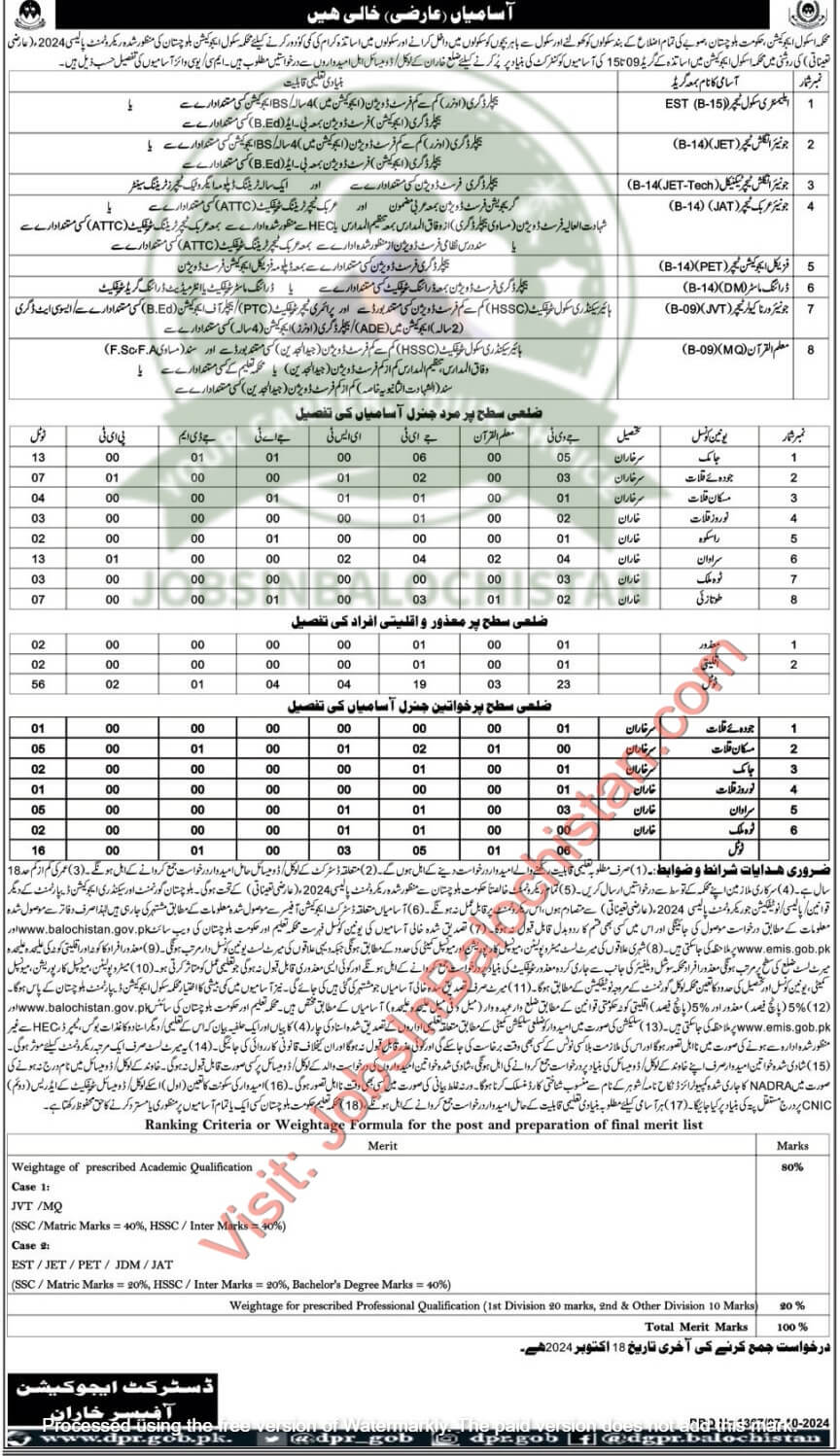 Submit applications along with all required documents to the District Education Officer, Kharan, by 17th October 2024.