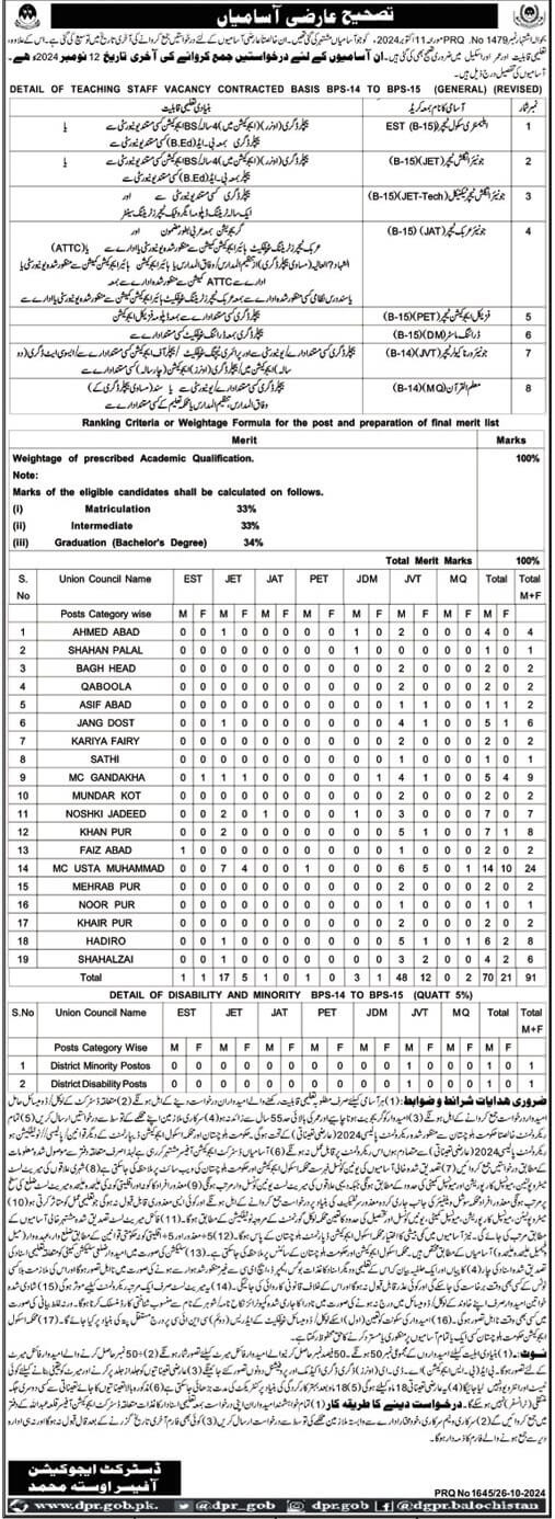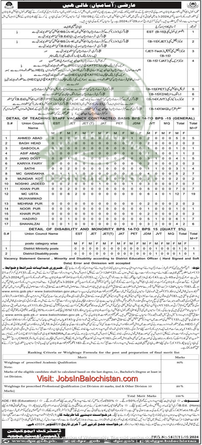 Submit applications along with all required documents to the District Education Officer, Usta Muhammad, by 12 Nov 2024.