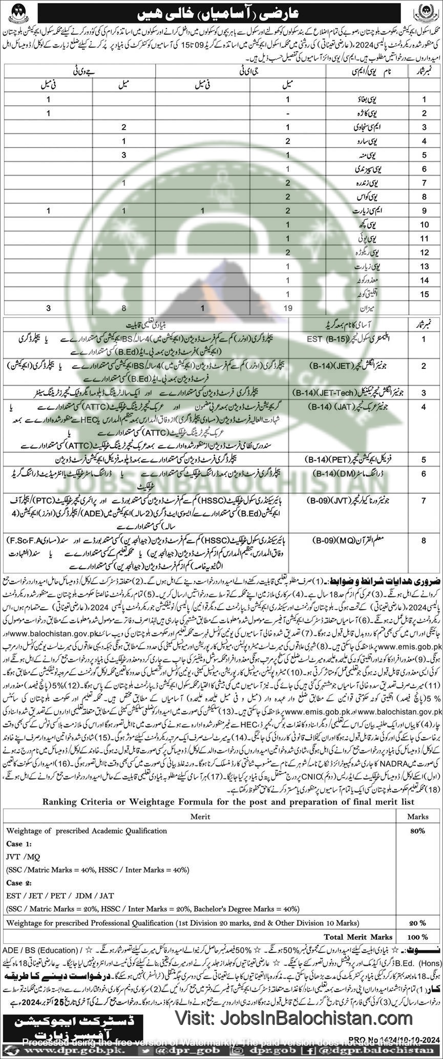 ToggleEducation Department District Ziarat Jobs in Balochistan 2024