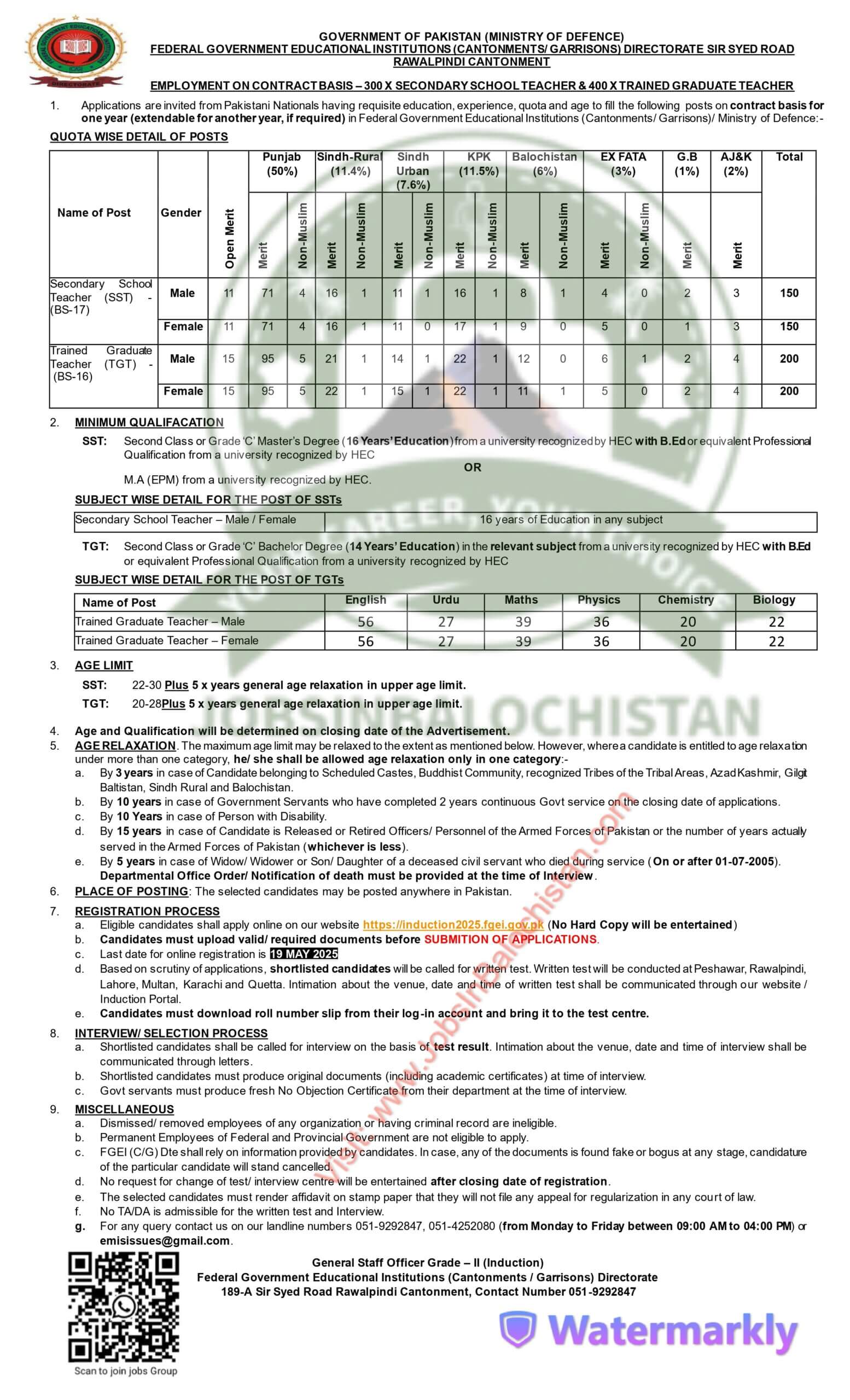 - Secondly: Visit the website: https://induction2025.fgei.gov.pk online applying. (No hard copy will be entertained)