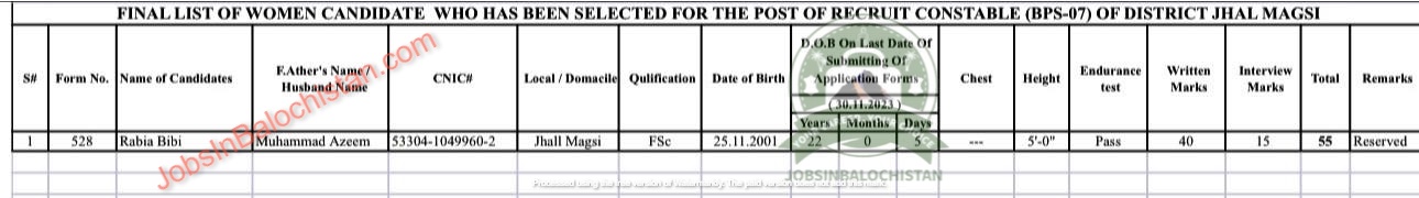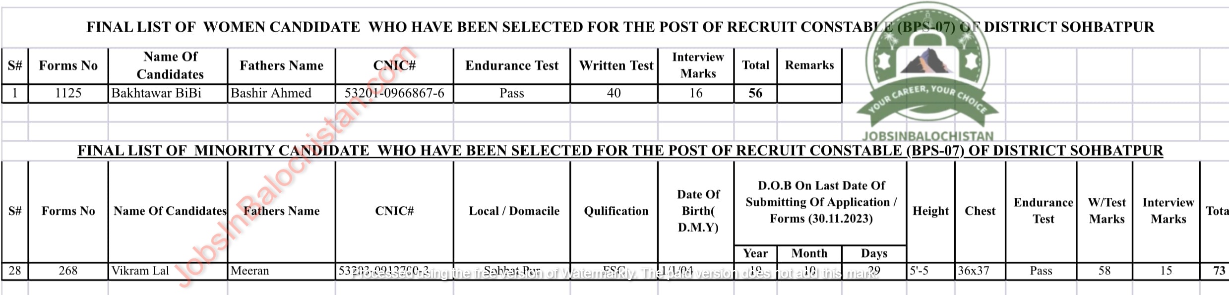 After a rigorous and thorough selection process, we are pleased to announce the final list of candidates who have successfully qualified for the position of Constable in the District Police Balochistan. This list is a culmination of the hard work, dedication, and determination demonstrated by the applicants throughout the selection phases.