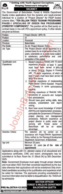 Government of Balochistan, Forest and Wildlife Department announced new jobs for 2025. These vacancies have been published in the Local Newspaper and are open to eligible candidates from Balochistan. The hiring process will adhere to departmental policies to ensure fairness and transparency. If you meet the eligibility criteria, you can apply for the positions listed in the advertisement below.
