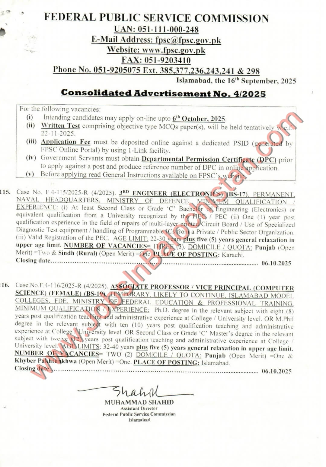 • All the details available in Federal Public Service Commission (FPSC) official website.