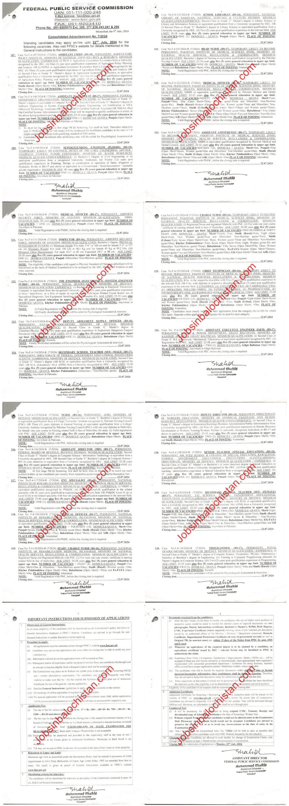 FPSC | Federal Public Service Commission Advertisement No. 7 2024 Jobs