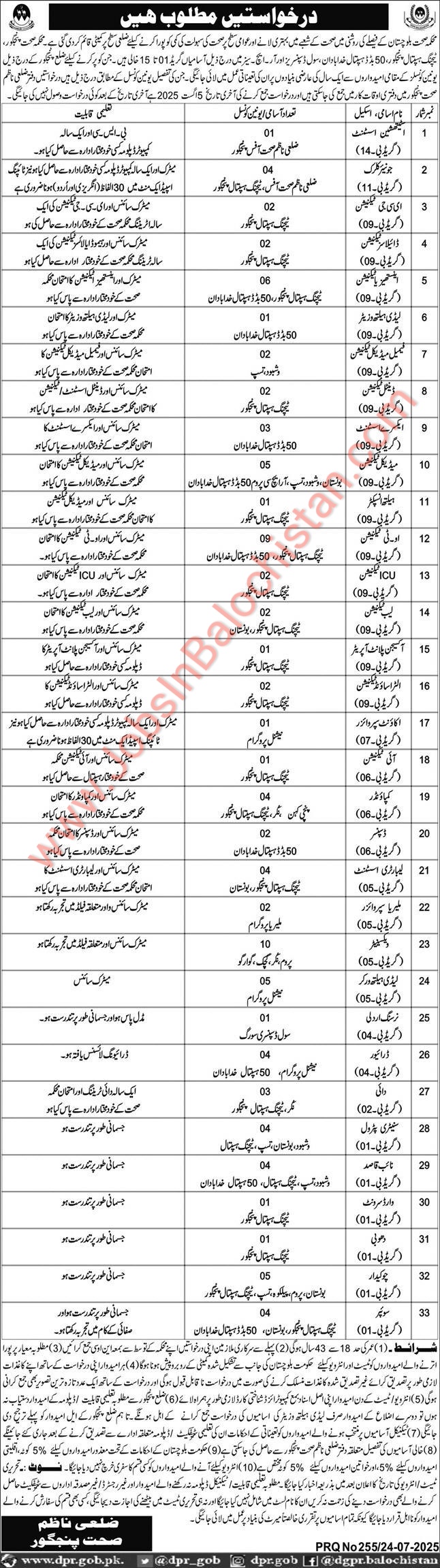 Health Department District Panjgoor Balochistan jobs for 2025. These vacancies have been published in the Local Newspaper and are open to eligible candidates from Balochistan. The hiring process will adhere to departmental policies to ensure fairness and transparency. If you meet the eligibility criteria, you can apply for the positions listed in the advertisement below.
