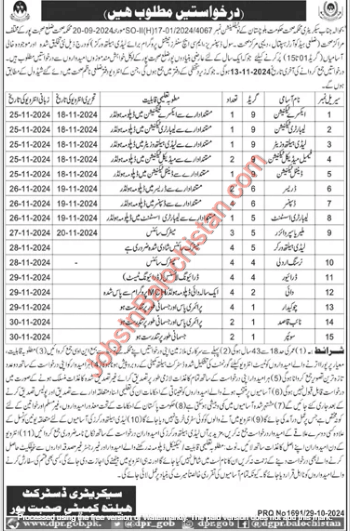 - Applications must be submitted to the District Health Nazim in Sohbatpur before 13 Nov 2024. Interviews will be held according to the schedule provided in the Deputy Commissioner’s office.