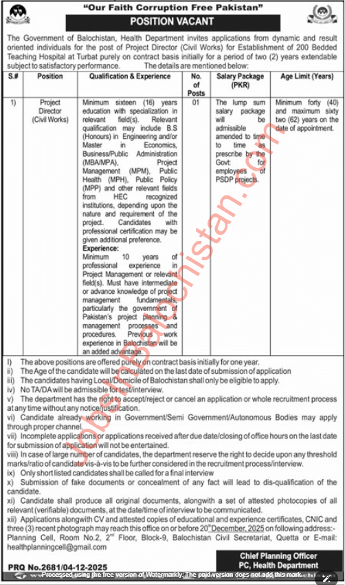 Only Domicile holder Balochistan can apply. In addition, candidates must meet the educational (16 years of education) and experience (06 years) requirements mentioned in the job description. As a result, only eligible applicants will be considered.