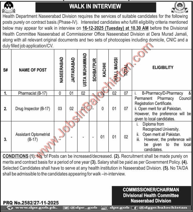 - Send your documents to the office of 👉 Divisional Health Committeee Naseerabad at Commissioner Office Naseerabad Division at Dera Murad Jamali.