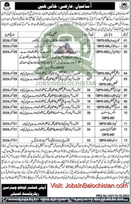 - Recruitment will be done under prevailing laws of Balochistan Government.