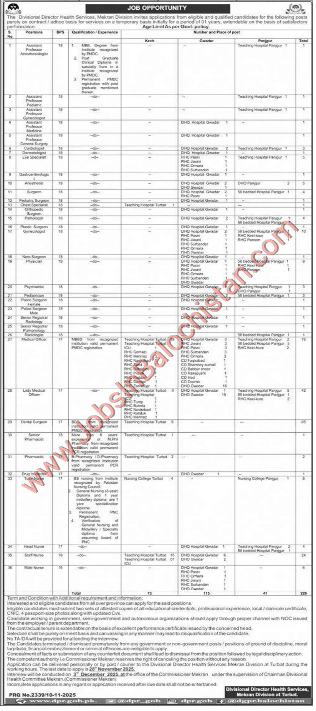 - Send your documents to the office of 👉 Division Directorate Health Services Mekran Division at Turbat city.