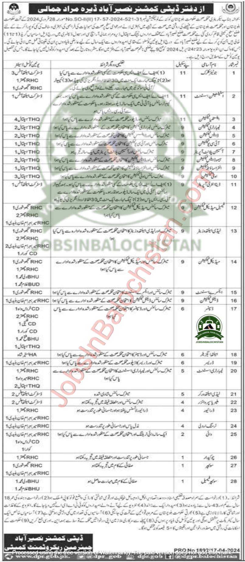 In the light of the decision of the Government of Balochistan and the Ministry of Health of Hochistan under the decision of Pelesh No. 31-521-2024-57-17 (11) 11-50. No. Date 28 February 2024 In order to improve and meet the shortage of staff in the provision of health facilities at the public level, a committee has been established at the district level. The following posts were filled (11 to 1). There are vacancies to be filled up from the local candidates of the listed Union Council of District Naseerabad on temporary basis for one year.