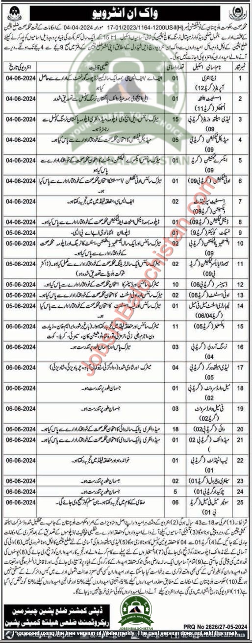 - Applications can be submitted in the District Health Pishin office by 4-6 June 2024 Whose interviews will be conducted