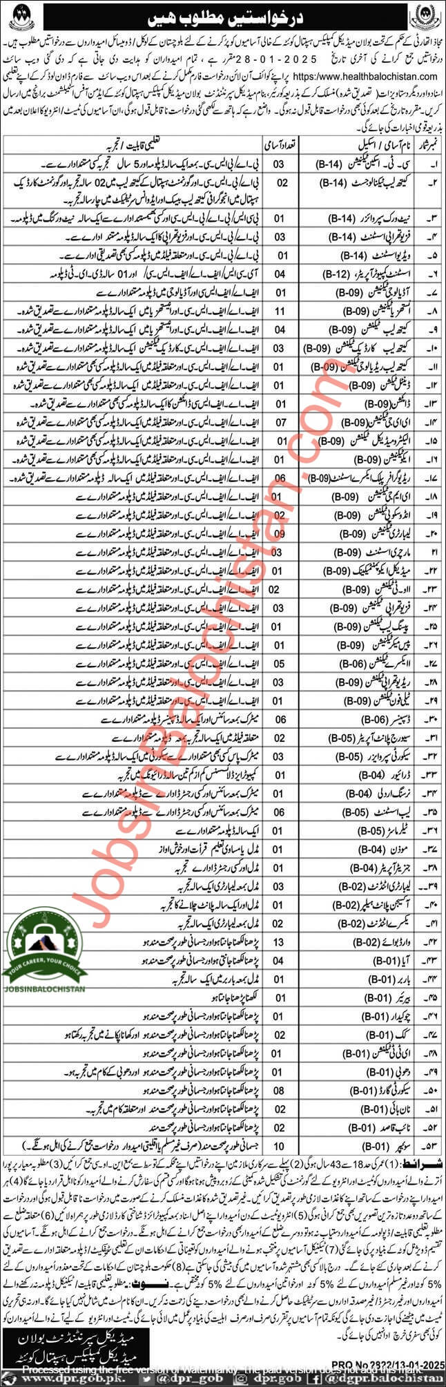- Send documents to the name of 👉 name of (Medical Superiendent ) Bolan Medical complex Hospital Quetta Admin office Establishment Branch.