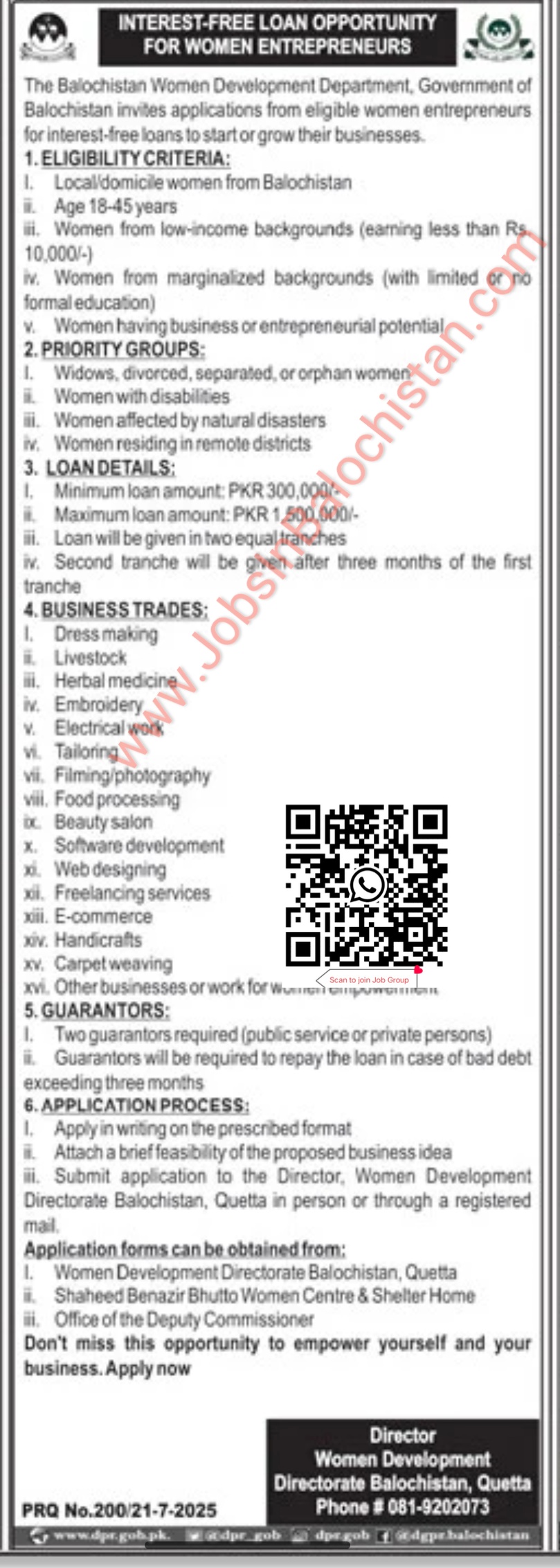Office of the Deputy Commissioner. Don’t miss this opportunity to uplift yourself and contribute to women empowerment in Balochistan. Take the first step today and apply for the interest-free loan for women entrepreneurs!
