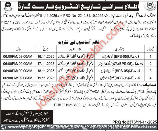 Interview schedule Forest and Wildlife Department, Jobs In Balochistan 2025. The vacancies have been announced in Balochistan through the Local Quetta Newspaper.
