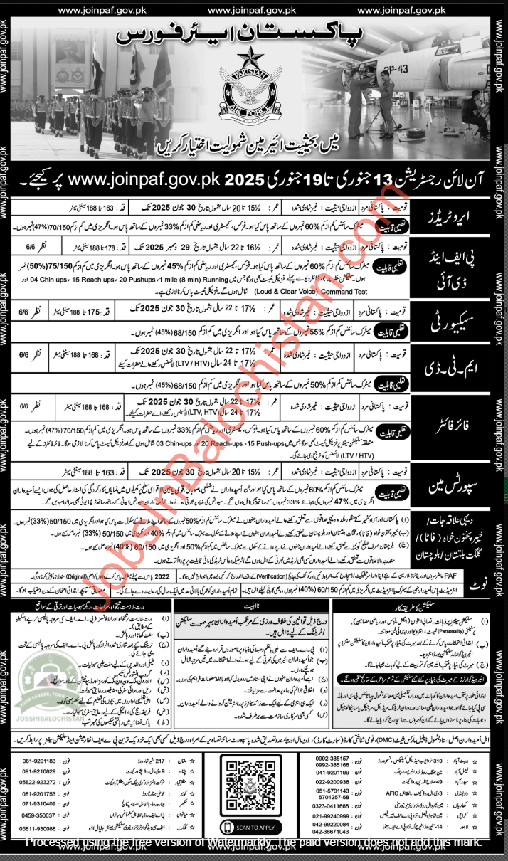 - Online Registration: Visit www.joinpaf.gov.pk for online applications for Pakistan Air Force (PAF) jobs.