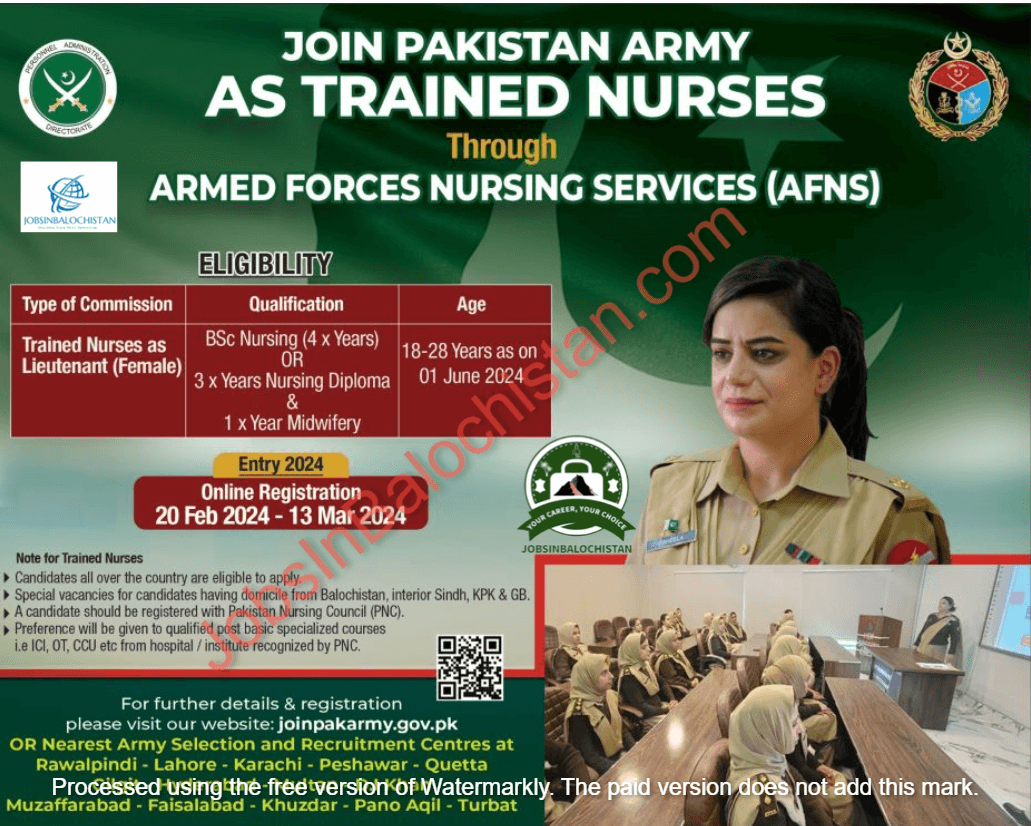 Join Pak Army As Trained Nurses Lieutenant (Female)Jobs 2024