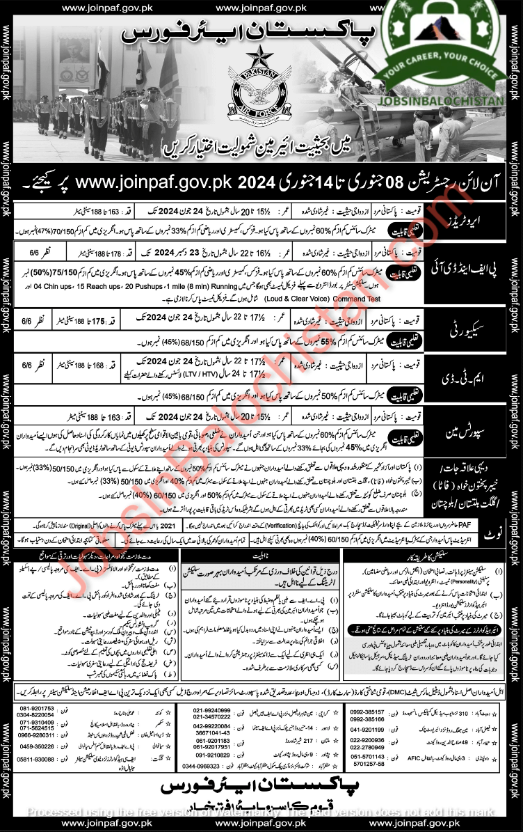www.joinpaf.gov.pk 2024 online registration from 08 January to 14 January