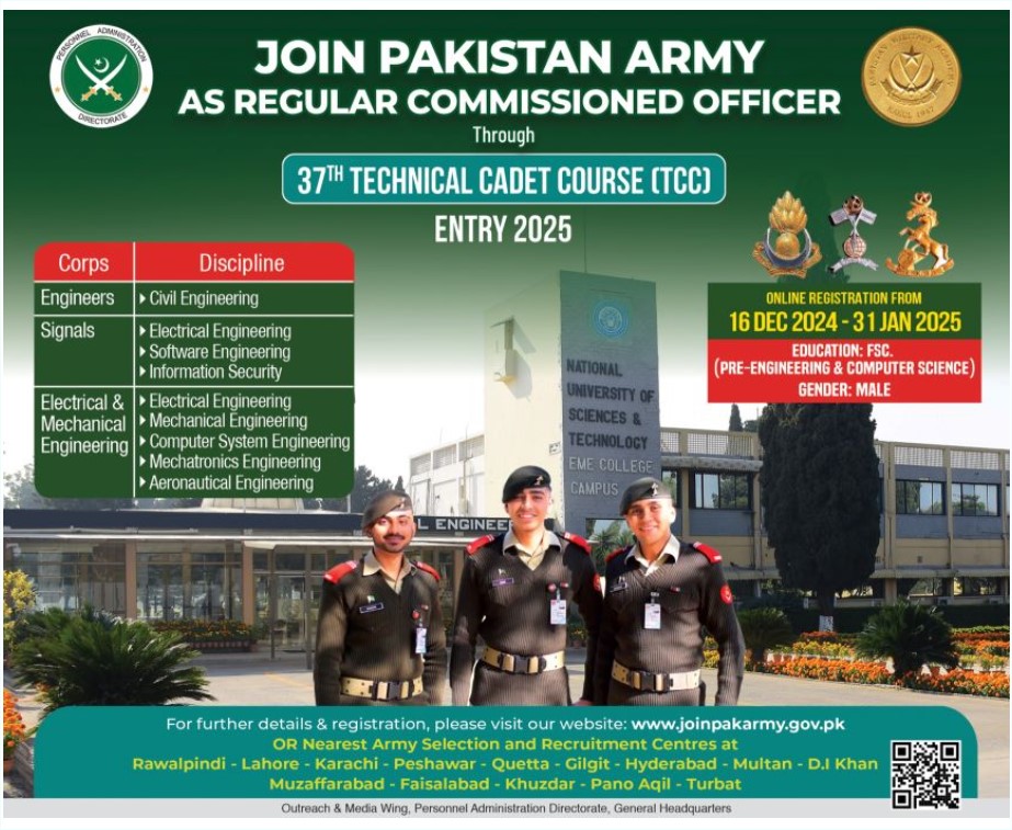 - For Further details & Registration, Please visit our website: www.joinpakarmy.gov.pk