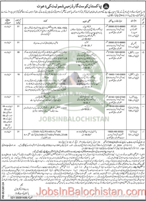Join Pakistan Coast Guard 2024 has jobs in Balochistan. The vacancies have been announced in Balochistan through the Jang Newspaper. The hiring process will follow departmental guidelines. Candidates from Balochistan who satisfy the requirements can now apply for the vacancies that are listed in the advertisement, Female, below. After the recruitment process is complete, eligible applicants can apply using the organization’s established procedure and receive these Jobs in Balochistan in 2024