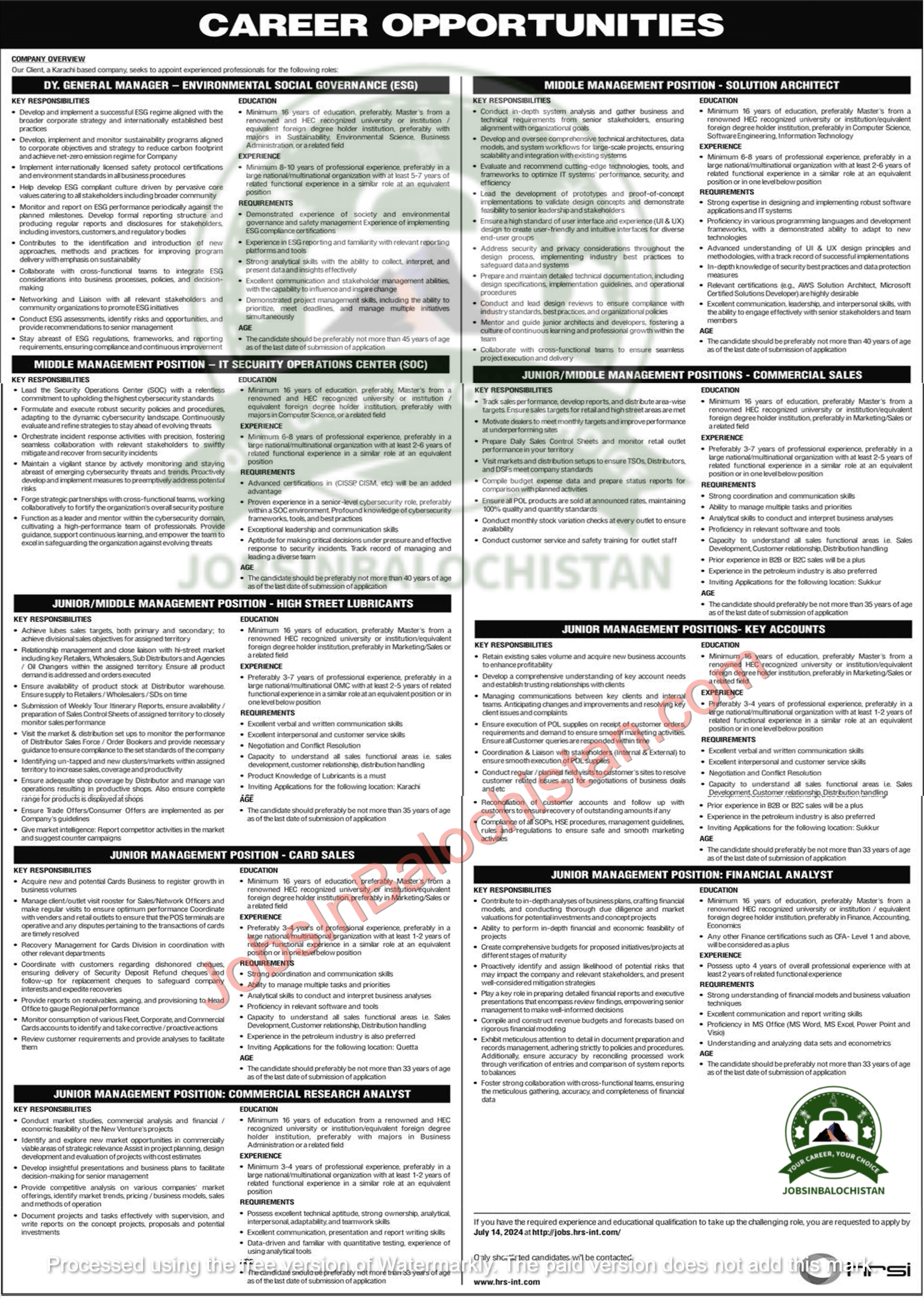 Those who are interested in the Karachi Based Company jobs in Balochistan are advised that they must first read this post and the advertisement for all the details. After reading the entire adv and determining that you are qualified for any position, you should submit your application in accordance with its requirements. Karachi Based Company jobs in Balochistan 2024 has announced a number of openings in Balochistan.