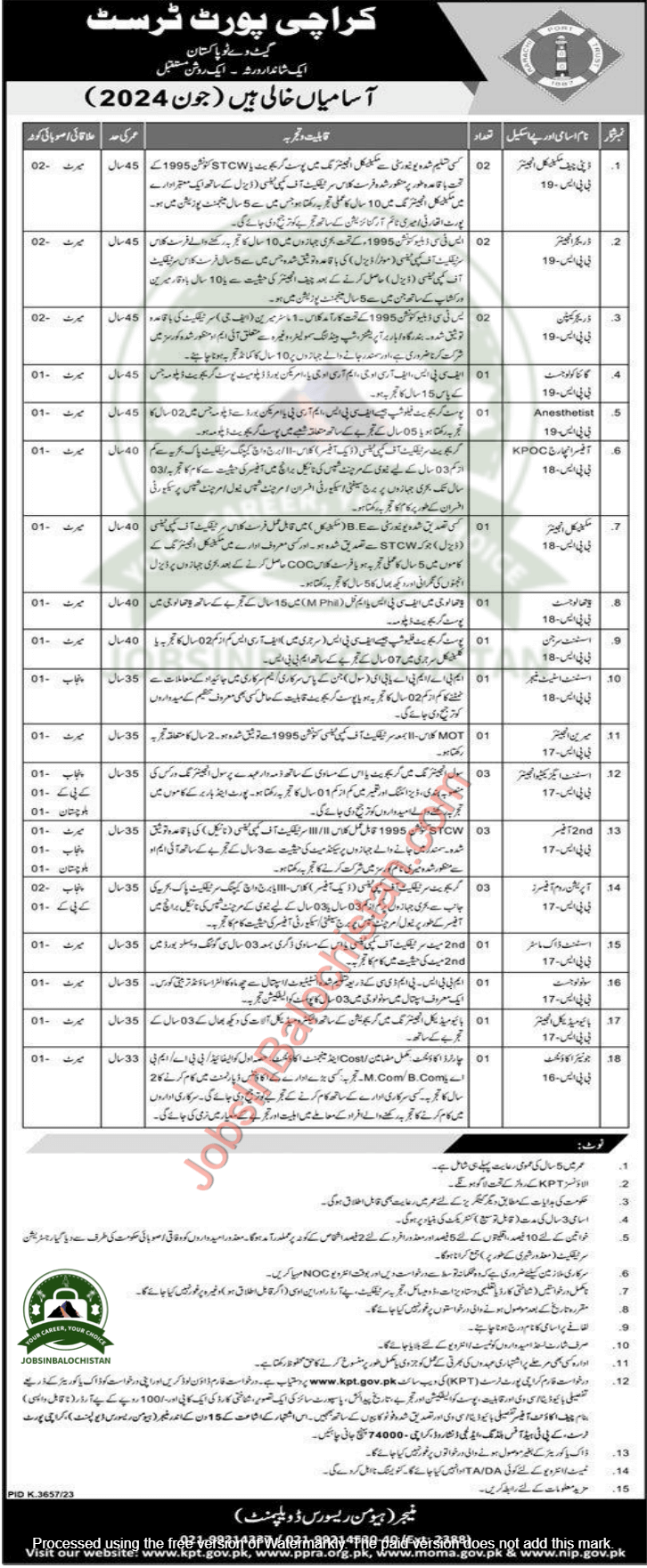 Karachi Port TrustΒ has jobs in Balochistan. The vacancies have been announced in Balochistan through the Jang Newspaper. The hiring process will follow departmental guidelines. Candidates from Balochistan who satisfy the requirements can now apply for the vacancies that are listed in the advertisement, Female, below. After the recruitment process is complete, eligible applicants can apply using the organizationβs established procedure and receive these Jobs in Balochistan in 2024