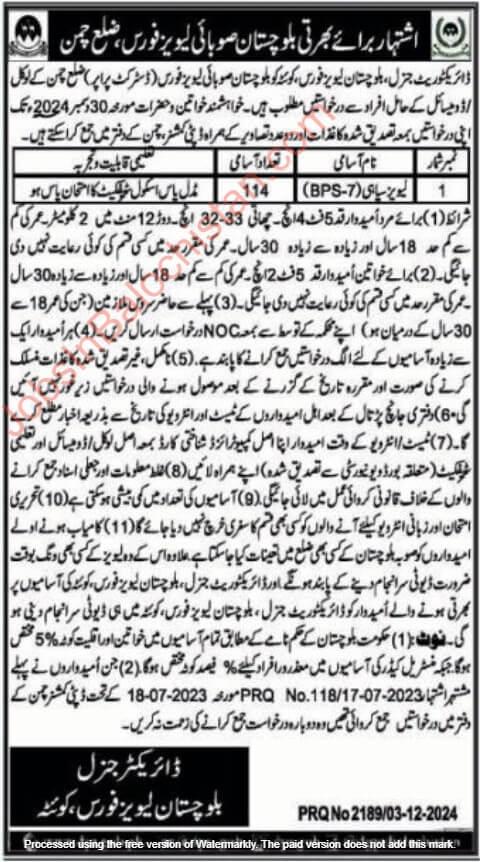 • Meanwhile the recruited candidate will perform duty in Directorate General Balochistan Levies Force, Quetta