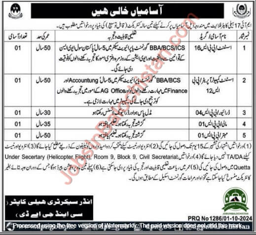 - send Your documents at the office of 👉 Under Secertary (Helicopter Flight), Room 9, Block 9 Civil Secretariat.