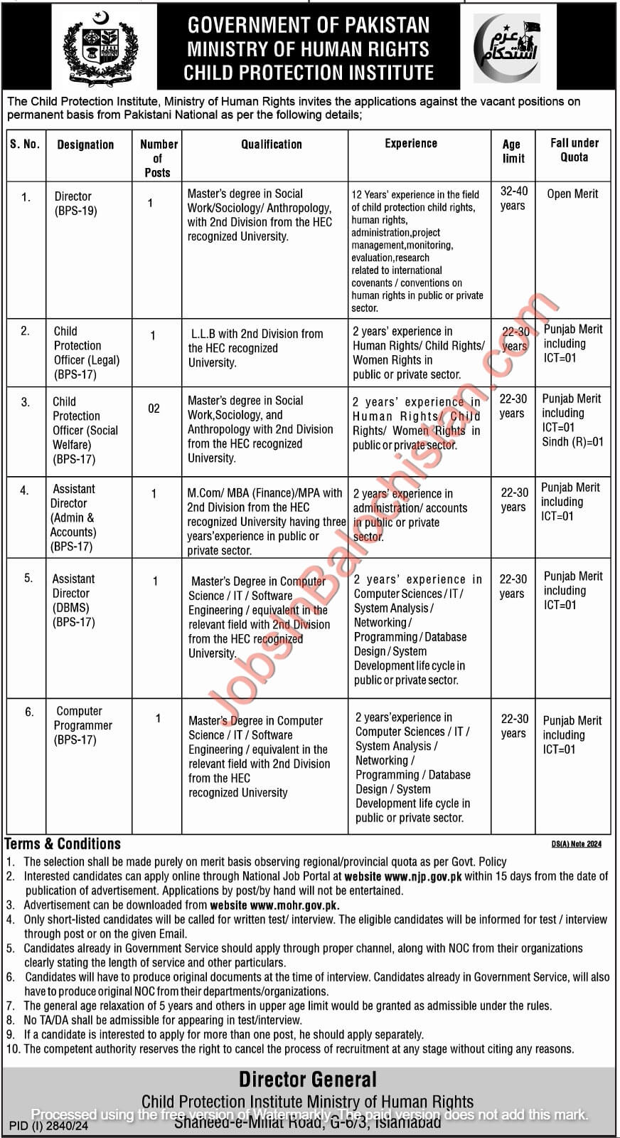Ministry of Human Right Child Protection Jobs In Balochistan 2024