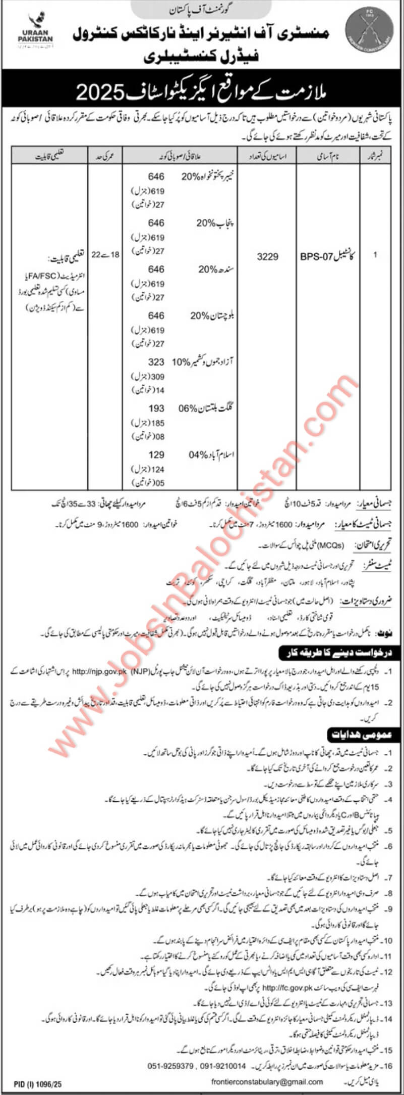 Ministry of Interior and Narcotics Federal Constabulary Jobs 2025