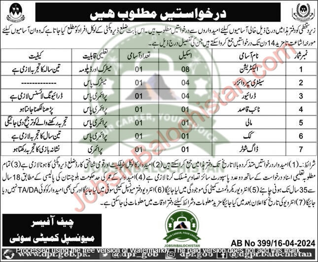 Those who are interested in the Municipal Committee MC Sui Jobs in Balochistan are advised that they must first read this post and the advertisement for all the details. After reading the entire adv and determining that you are qualified for any position, you should submit your application in accordance with its requirements. Municipal Committee MC Sui Jobs in Balochistan 2024 has announced a number of openings in Balochistan.