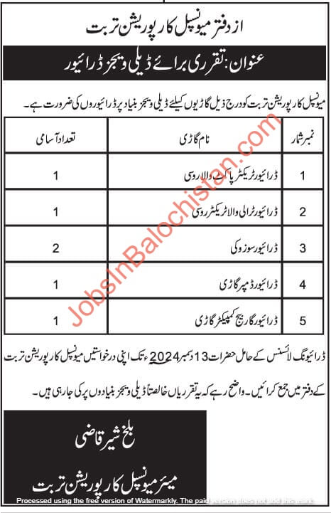 ToggleMunicipal Committee Turbat Jobs in Balochistan