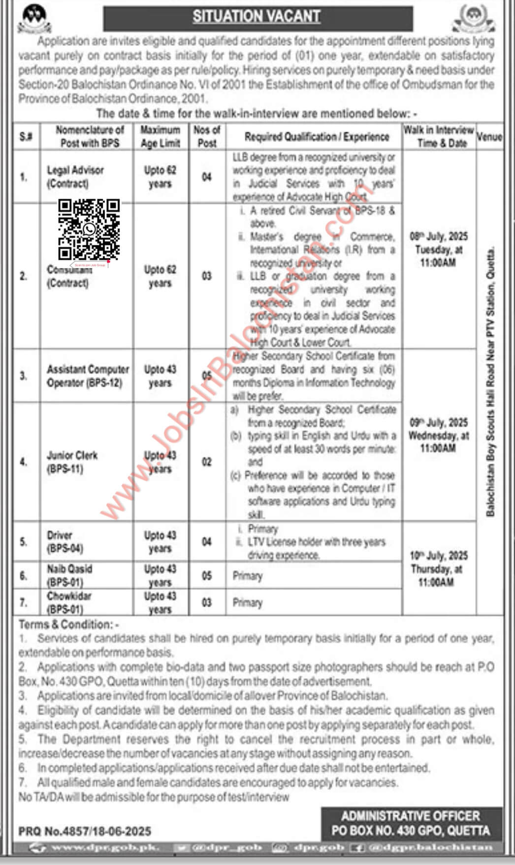 Ombudsman PO Box No. 430 No. 430 Balochistan jobs for 2025. These vacancies have been published in the Local Newspaper and are open to eligible candidates from Balochistan. The hiring process will adhere to departmental policies to ensure fairness and transparency. If you meet the eligibility criteria, you can apply for the positions listed in the advertisement below.