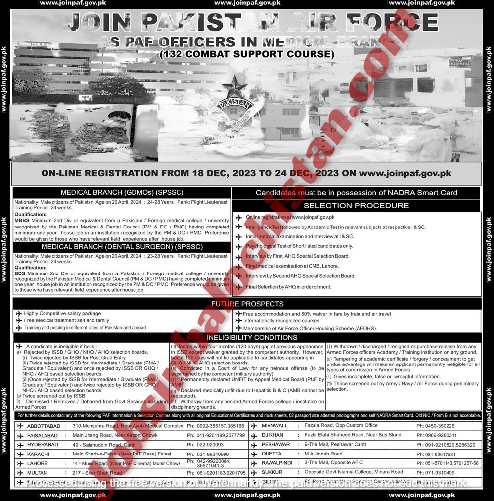 Pakistan Air Force PAF Officer in Medical Branch Jobs 2023